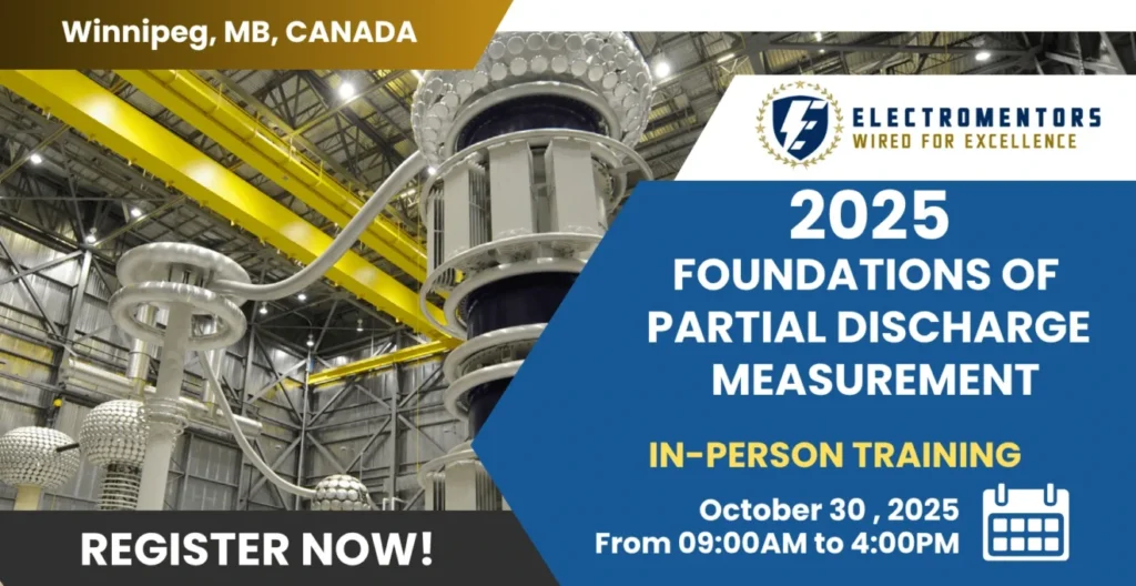 ElectroMentors is pleased to announce the 2025 Foundations of Partial Discharge Measurement Bootcamp, hosted at Manitoba Hydro’s world-class High Voltage Test Facility (HVTF) — a leading utility in high-voltage engineering and partial discharge diagnostics. This full-day, in-person training covers the core principles of partial discharge (PD) measurement and its critical role in assessing the health and reliability of high-voltage insulation systems. The program blends theory with live demonstration sessions, giving participants valuable insights into PD measurement, interpretation, and asset health assessment.